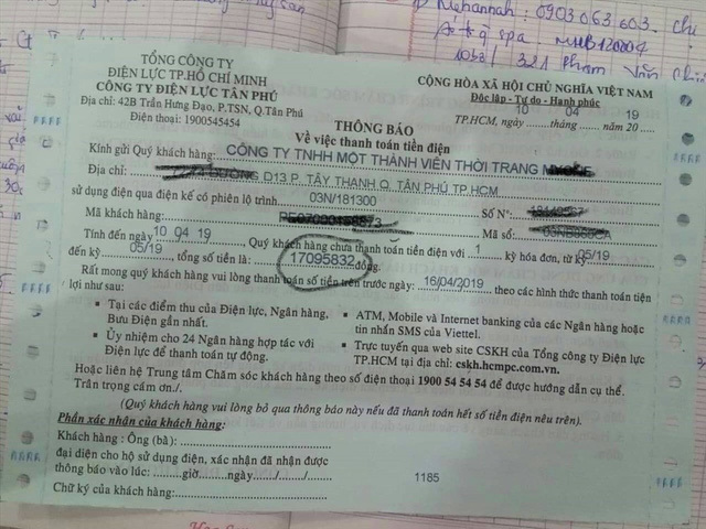 Phản ánh đến báo, bà Thúy Ngọc, chủ một doanh nghiệp may mặc tại quận Tân Phú, TP.HCM cho biết nhân viên điện lực vừa thông báo tới bà hóa đơn tiền điện tháng 3 tăng lên đến gần gấp đôi so với tháng trước.