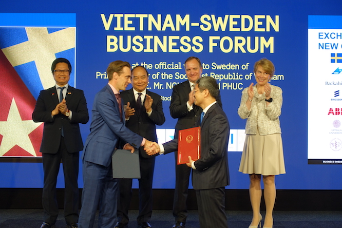 Lễ trao đổi Ý định thư được diễn ra trong hội nghị bàn tròn, trong khuôn khổ Diễn đàn Kinh tế Việt Nam-Thụy Điển tại thủ đô Stockholm nhân kỷ niệm 50 năm thiết lập quan hệ ngoại giao hai nước.