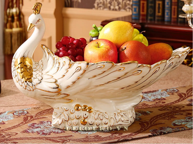 Ngoài 8 biểu tượng kỳ quan thế giới, phòng khách của bạn sẽ cực kỳ khác biệt và đẳng cấp với sự xuất hiện của khay hoa quả thiên nga trên bàn tiếp khách. Đây được xem như món đồ trang trí phòng khách cực kỳ sang trọng được làm bằng gốm sứ trắng cao cấp. Nó như một tác phẩm nghệ thuật với những nét vẽ tinh xảo được mạ vàng nổi bật.