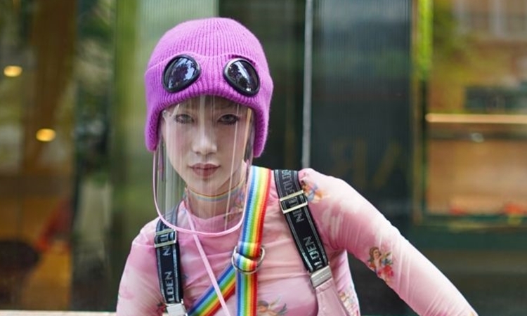 Một tín đồ (phải) diện bộ trang phục mùa đông với gam màu xanh quân đội làm từ chất liệu vải dù.