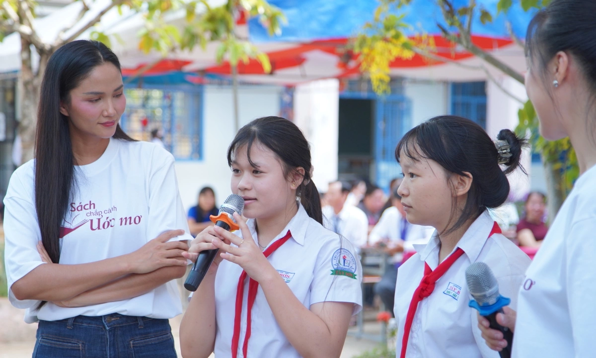 Cô còn tham gia ký tặng sách và giao lưu trực tiếp với học sinh. Nhiều bạn đặt câu hỏi về cách vượt qua tự ti, duy trì động lực học tập và theo đuổi đam mê.